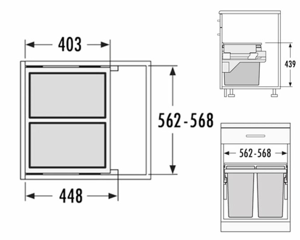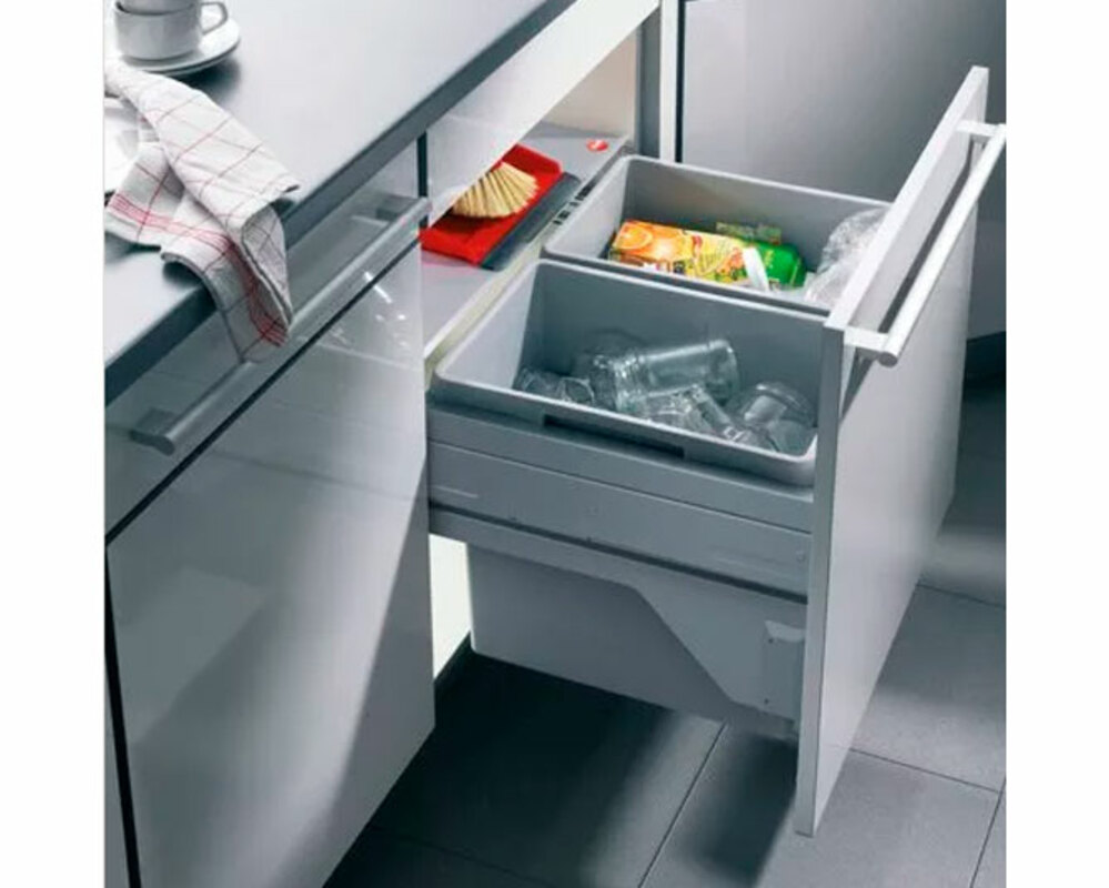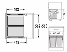 Встраиваемая система Euro-Cargo-Soft Hailo 3610-62 Soft-Control с двумя контейнерами по 30 литров в шкаф под мойку с креплением выдвижного фасада.