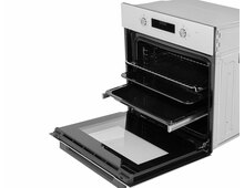 Особенности Противень глубиной 28 мм / Противень глубиной 45 мм / Съемная дверца с тройным стеклом / Пластиковая ручка дверцы съемная / Очистка паром / Тангенциальный одноуровневый вентилятор охлаждения
