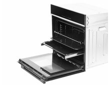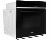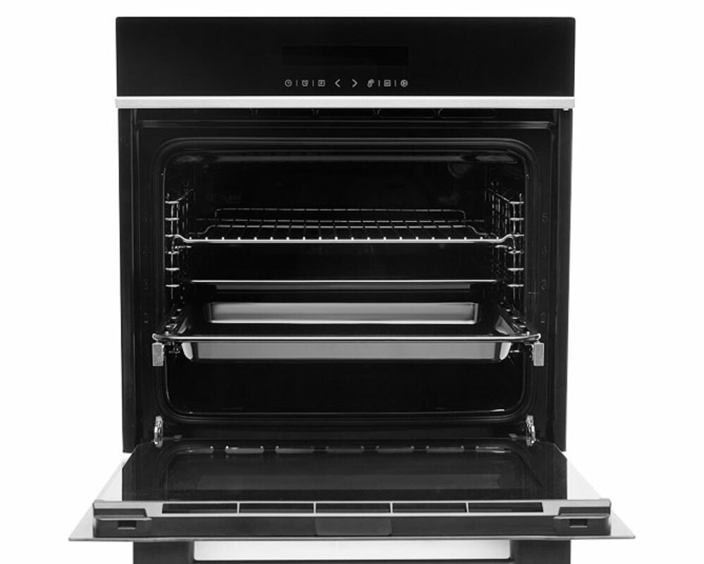 Встраиваемый электрический духовой шкаф с камерой 70 литров, с 10 режимами приготовления, сенсорным управлением, очисткой паром и каталитической очисткой задней стенки, а также телескопическими и хромированными направляющими.