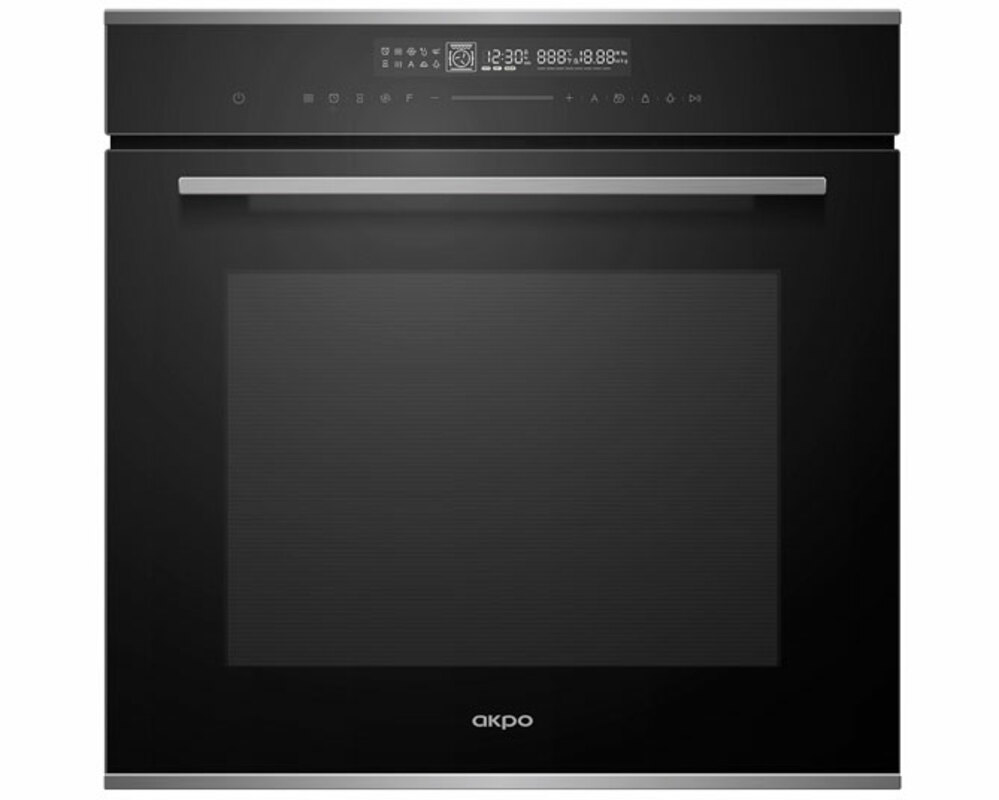 Встраиваемый электрический духовой шкаф с функцией СВЧ, рабочей камерой 72 литра, полностью сенсорным управлением, гидролизной очисткой и направляющими из нержавеющей стали (5 уровней), выпускаемый под польским брендом AKPO (АКПО).