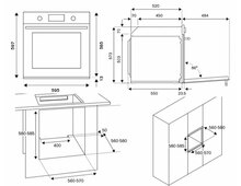 Наполнение духового шкафа 1 усиленная решетка, 1 паровой лоток, 1 эмалированный противень, 2 боковые лампы освещения
