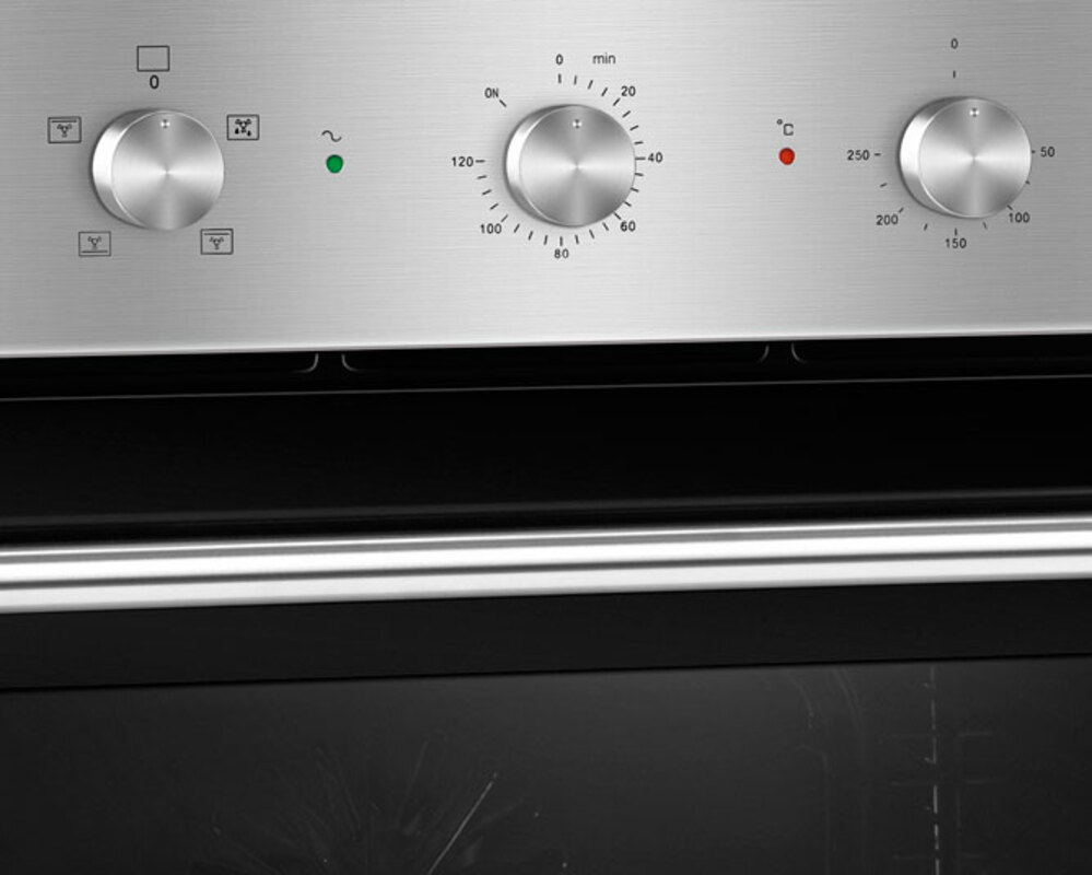 Дверь духового шкафа сделана полностью из трёхслойного стекла, защищающего от высоких температур.