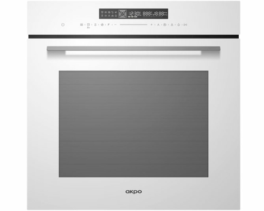 Встраиваемый электрический духовой шкаф с функцией СВЧ, рабочей камерой 72 литра, полностью сенсорным управлением, гидролизной очисткой и направляющими из нержавеющей стали (5 уровней), выпускаемый под польским брендом AKPO (АКПО).