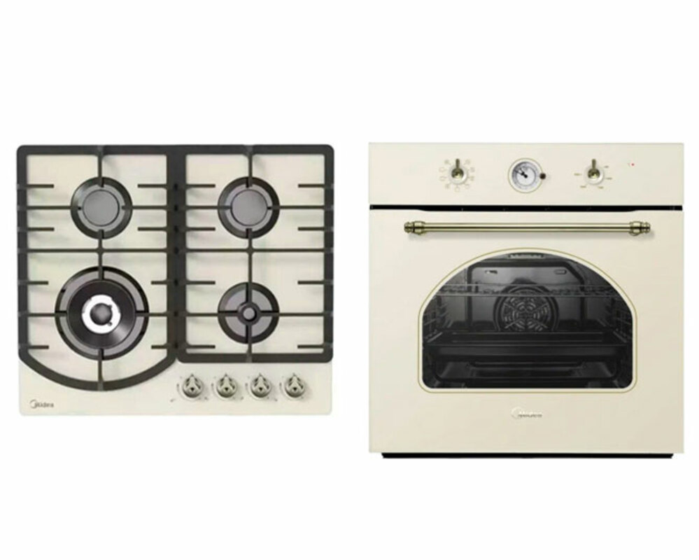 Комплект техники Midea: духовой шкаф MO58100RGI-B + варочная поверхность газовая MG647TRGI-B.