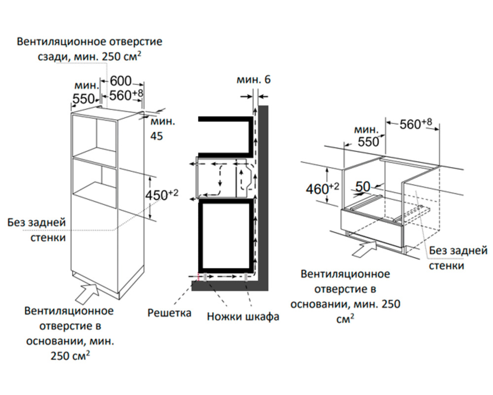 - Размер ниши (В×Ш×Г): 45×56×55 см