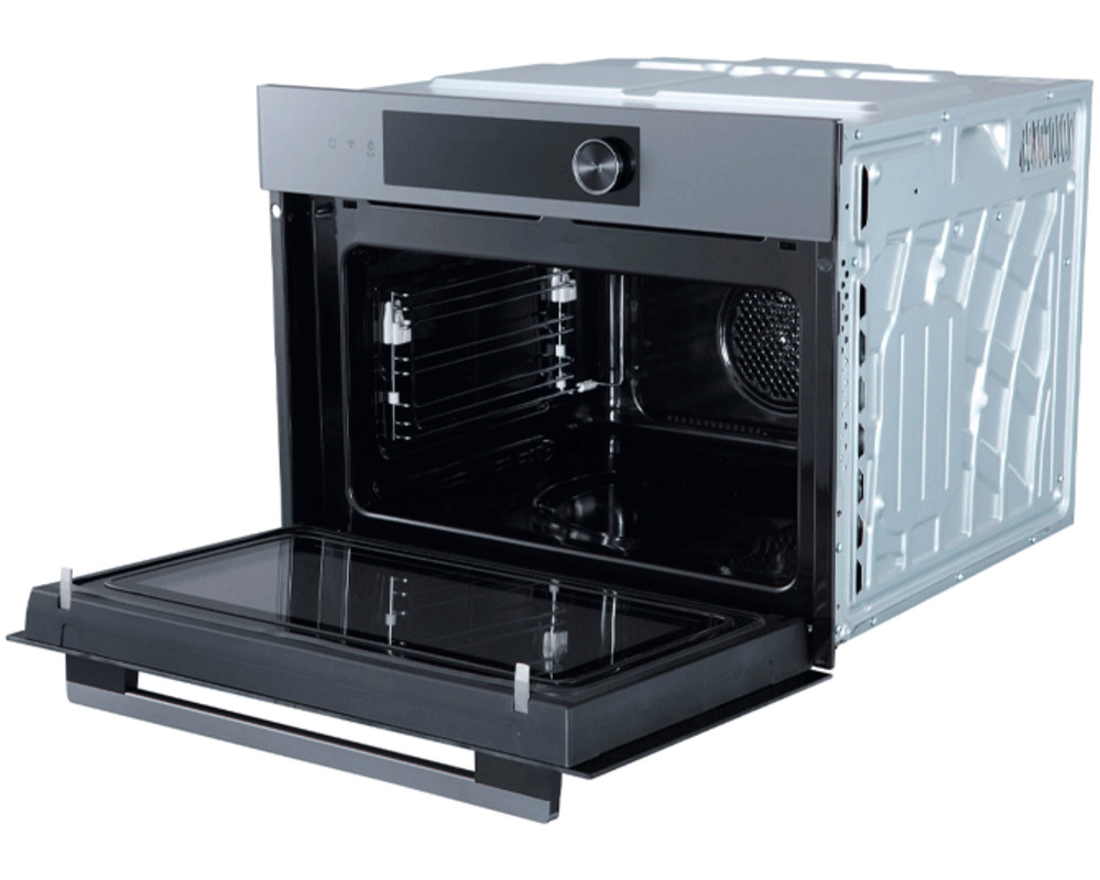сочетает функции традиционной электропечи и микроволновки в едином корпусе, что экономит пространство встроенной кухни и упрощает приготовление любых блюд.