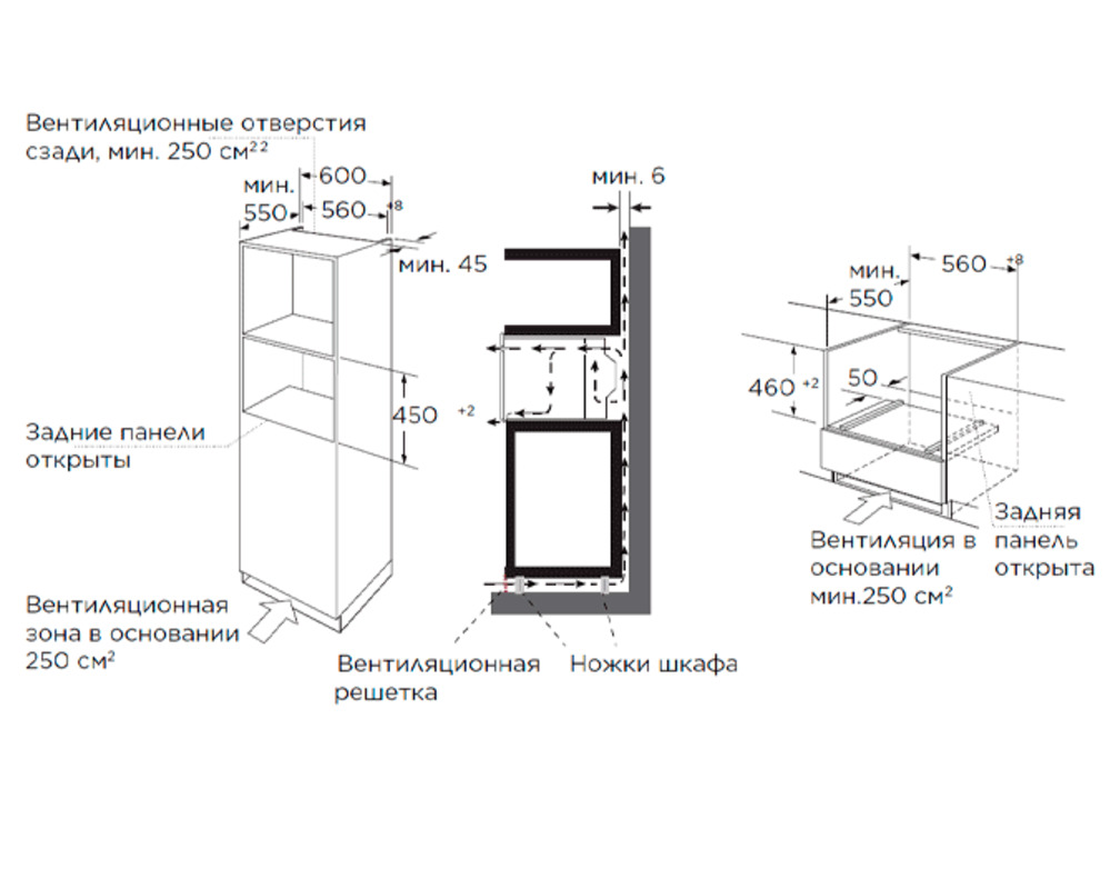 - Размер ниши (В×Ш×Г): 45×56×55 см