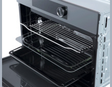Три уровня мощности СВЧ и встроенный двойной гриль с вентилятором обеспечивают быстрый разогрев и равномерное запекание больших кусков мяса или пиццы.