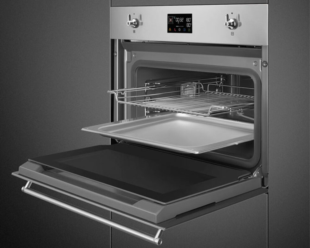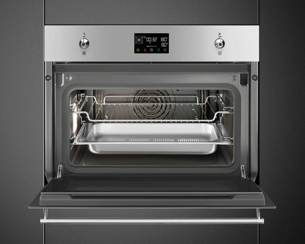 SMEG SO4302S3X Компактный духовой шкаф, комбинированный с пароваркой, 45 см, 12 функций, нержавеющая сталь с обработкой против отпечатков пальцев.