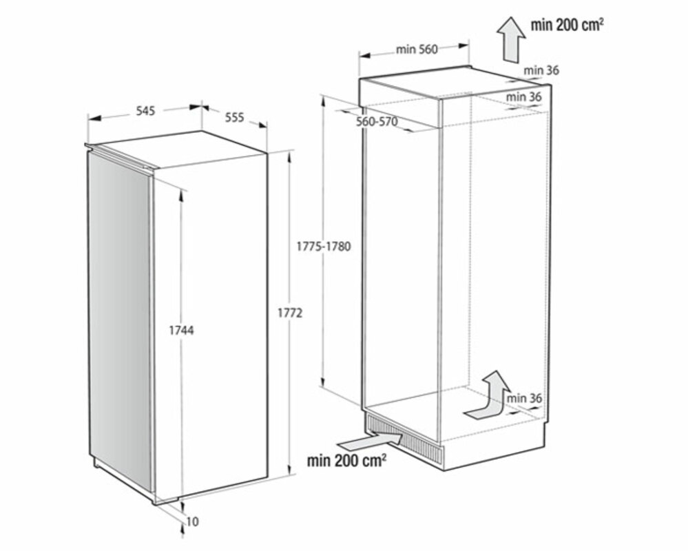 Монтажные размеры (шхвхг): 56-57 × 177.5-178 × 56 см