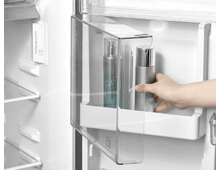 На металлические двери снаружи нанесено специальное покрытие с защитой от отпечатков пальцев. Внутреннее освещение обеспечивают LED-лампы. Об открытии двери оповещает звуковой сигнал. Хранение при отключении питания — 7 часов. Прибор принадлежит к классу энергоэффективности A++. Энергопотребление в год составляет 277 кВт*ч. Цвет корпуса и дверей — бронзовый/коричневый. Цвет фурнитуры — черный. Габариты составляют 172,3х69,1х70 см. Вес равен 71 кг.