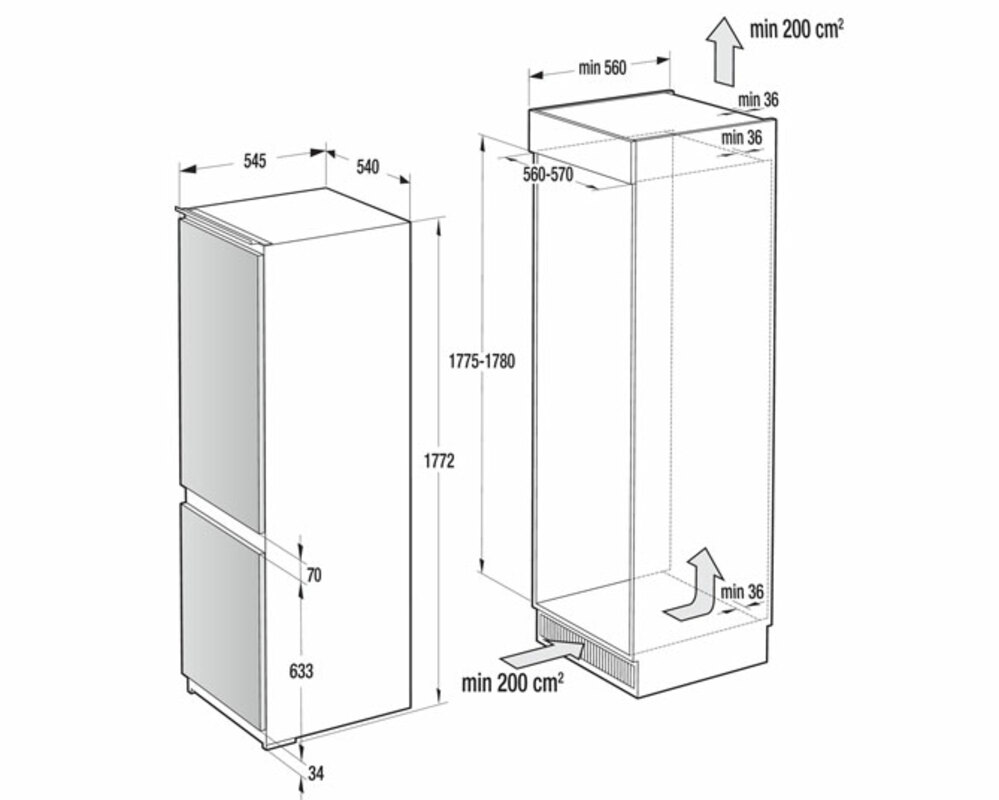 Монтажные размеры (шхвхг): 56-57 × 177.5-178 × 56 см