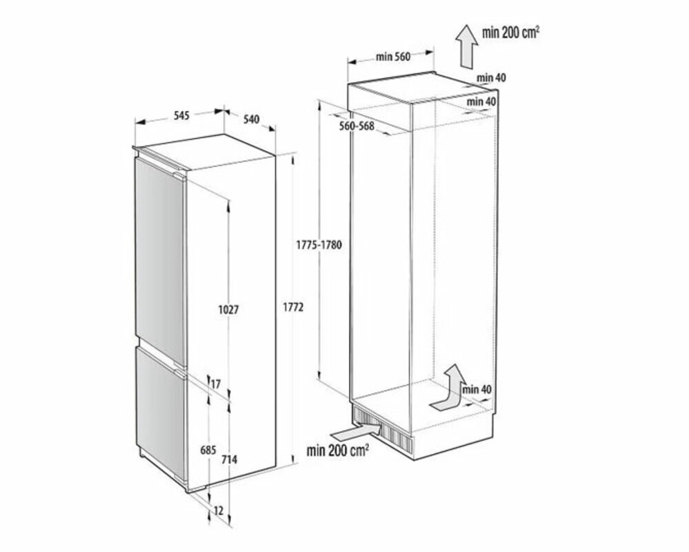 Встраиваемый холодильник GORENJE NRKI517E82WF – стильное и современное решение для вашей кухни. Габариты 177.2×54×54.5 см и перенавешиваемые двери позволяют легко интегрировать его в мебель. Общий объем 244 л (холодильная камера 176 л, морозильная – 68 л) обеспечивает достаточное пространство для хранения.