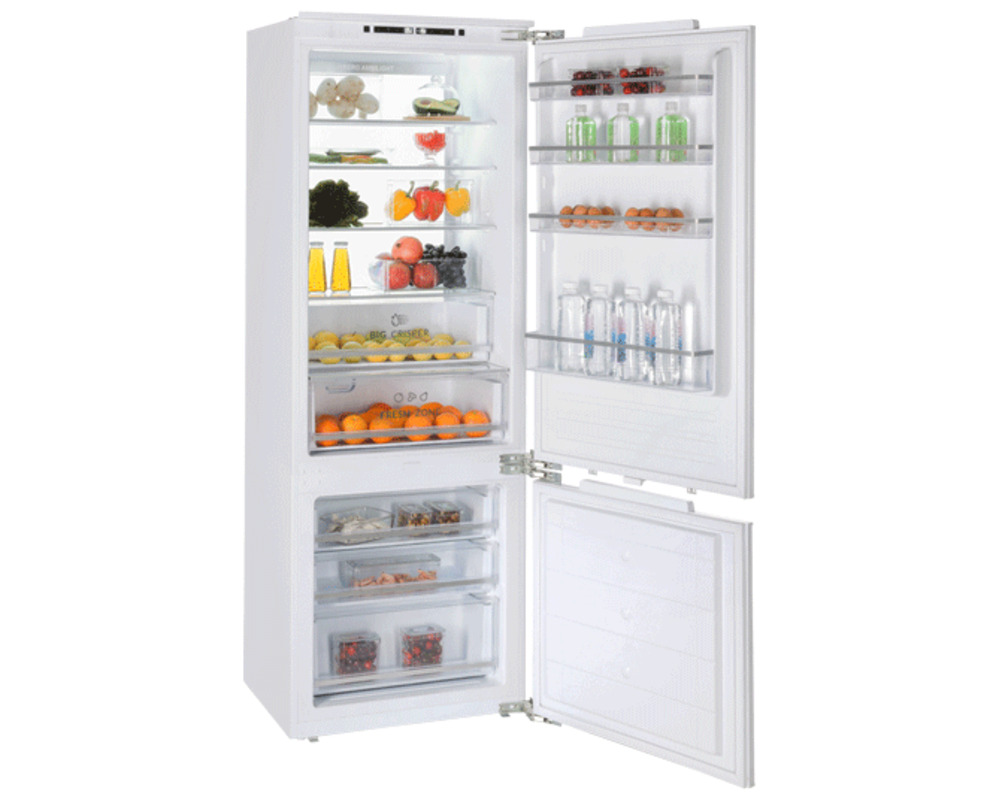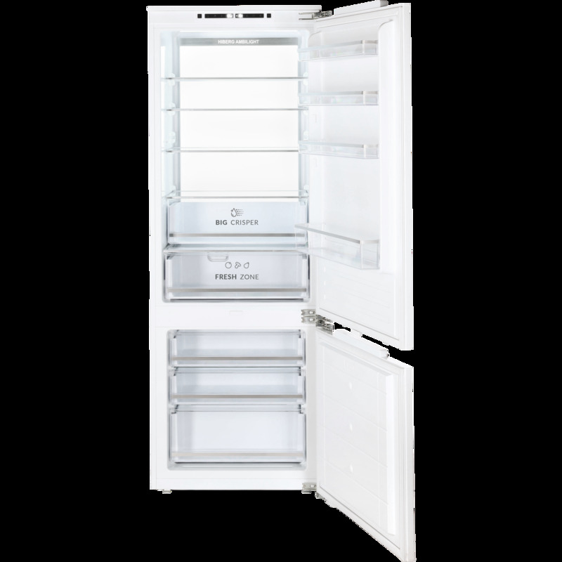 Встраиваемый холодильник HIBERG i-RFCB-500F NFW с инверторным компрессором, автоматической системой охлаждения Total No Frost, зоной свежести и электронным управлением — идеальный выбор для встраивания в кухонный гарнитур, создания комфортного и стильного пространства.
