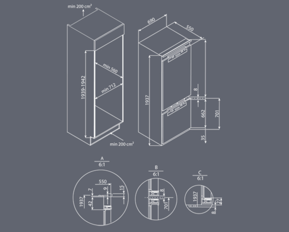 Размер ниши для встраивания (ШхГхВ) 69 х 55 х 193.7 см