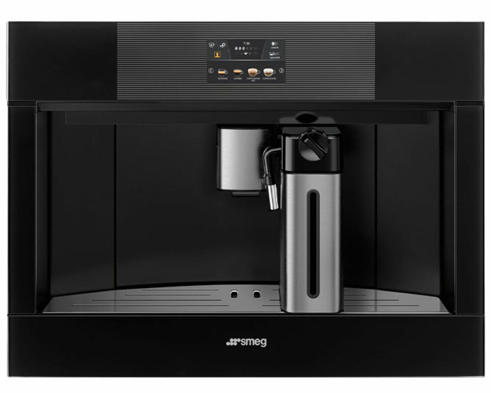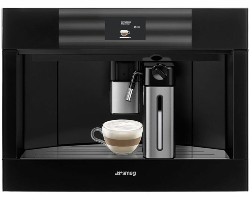 Автоматическая кофемашина SMEG CMS4104B3RU сочетает стильный дизайн и функциональность. Компактные размеры (59.5×45.5×47 см) позволяют удобно встроить ее в кухонный гарнитур. Телескопические направляющие SoftClose обеспечивают плавное открывание. Цветной TFT-дисплей (4.3″) и сенсорное управление делают использование интуитивно понятным.