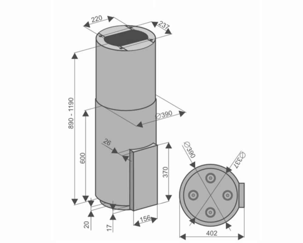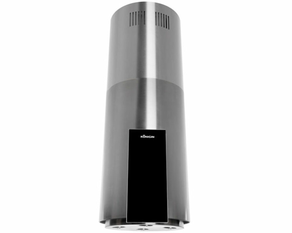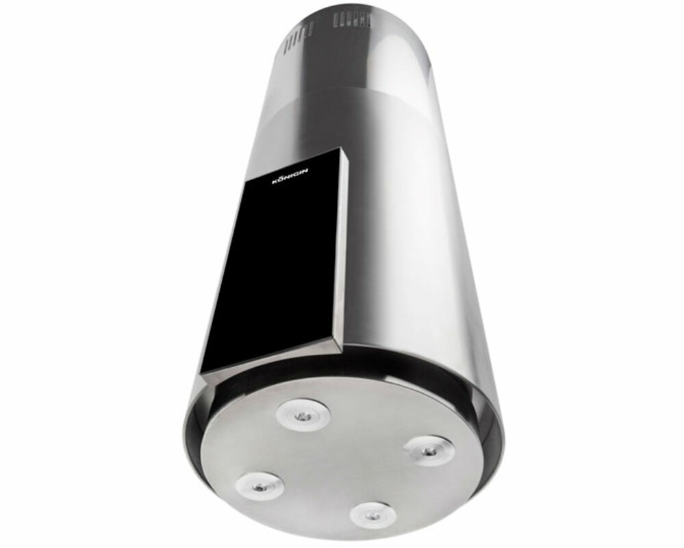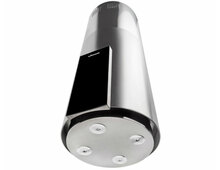 Островная вытяжка - это уже не только необходимое устройство, но и фантастический элемент интерьера. Сочетания цилиндрического корпуса с прямоугольной панелью управления и круглой декоративной панелью освещения создают стильную геометрию, привлекают лаконичностью и правильностью форм.