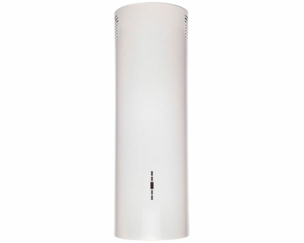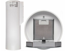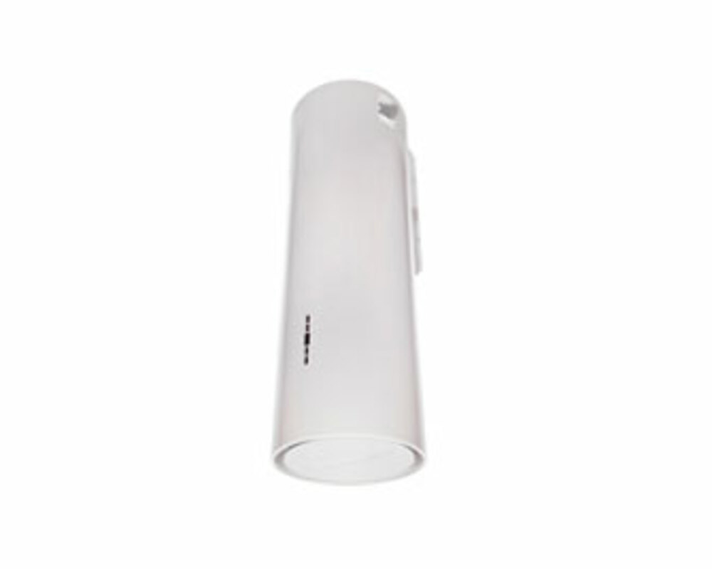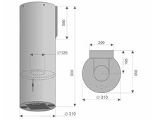 Вытяжка выполнена в форме цилиндра. Геометрические формы повсеместно используется в современных дизайнерских проектах, они ассоциируются с простотой и лаконичностью, привносят в помещение гармонию и стиль. Стильное сочетание стали и блеска закаленного стекла создают ощущение легкости прочной конструкции. Декоративный стеклянный люк скрывает алюминиевый, жироулавливающий фильтр, придавая завершенность композиции