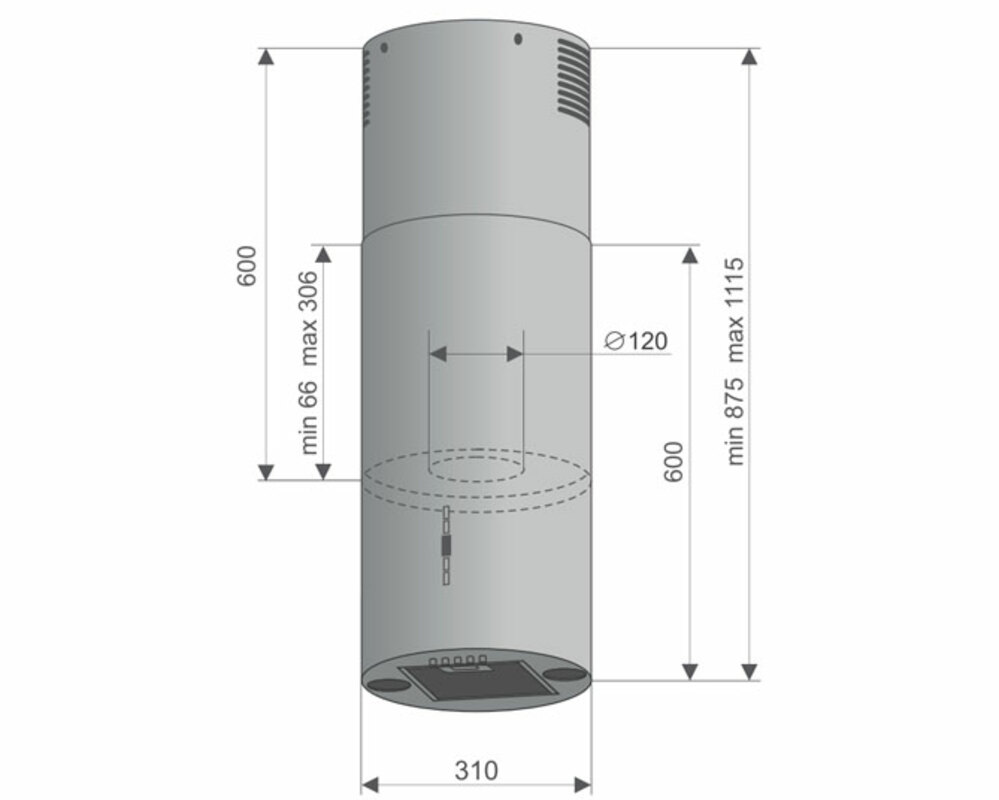 • Вытяжка выполнена в форме цилиндра. Геометрические формы повсеместно используется в современных дизайнерских проектах, они ассоциируются с простотой и лаконичностью, привносят в помещение гармонию и стиль.