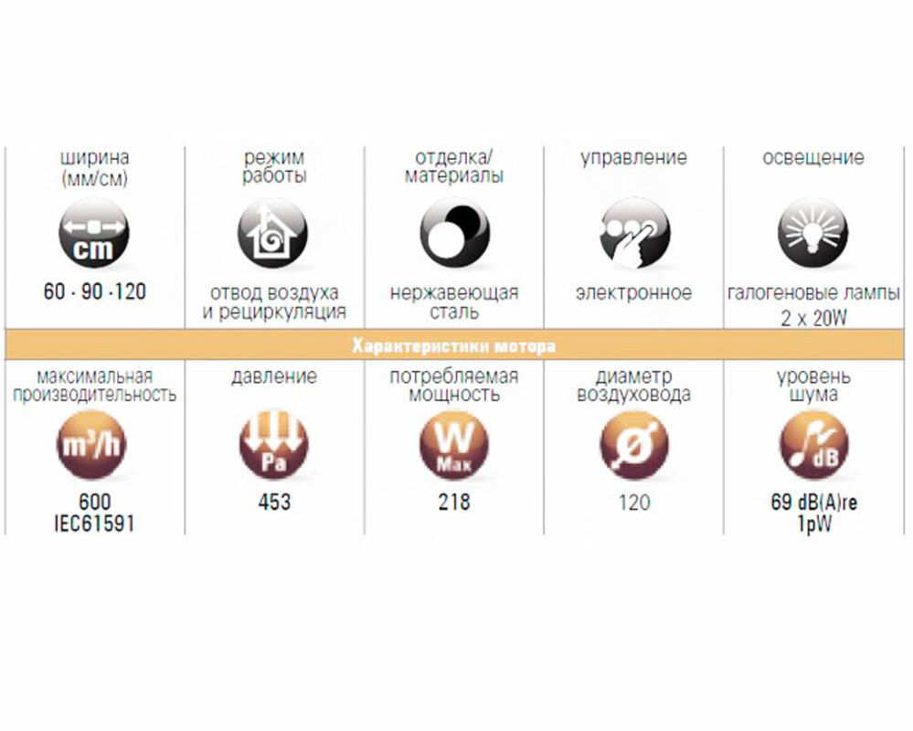 Комплектация Электронное управление 4 скорости; Мотор мощностью 600 м3/ч; Галогенные лампы 2х20 Вт
