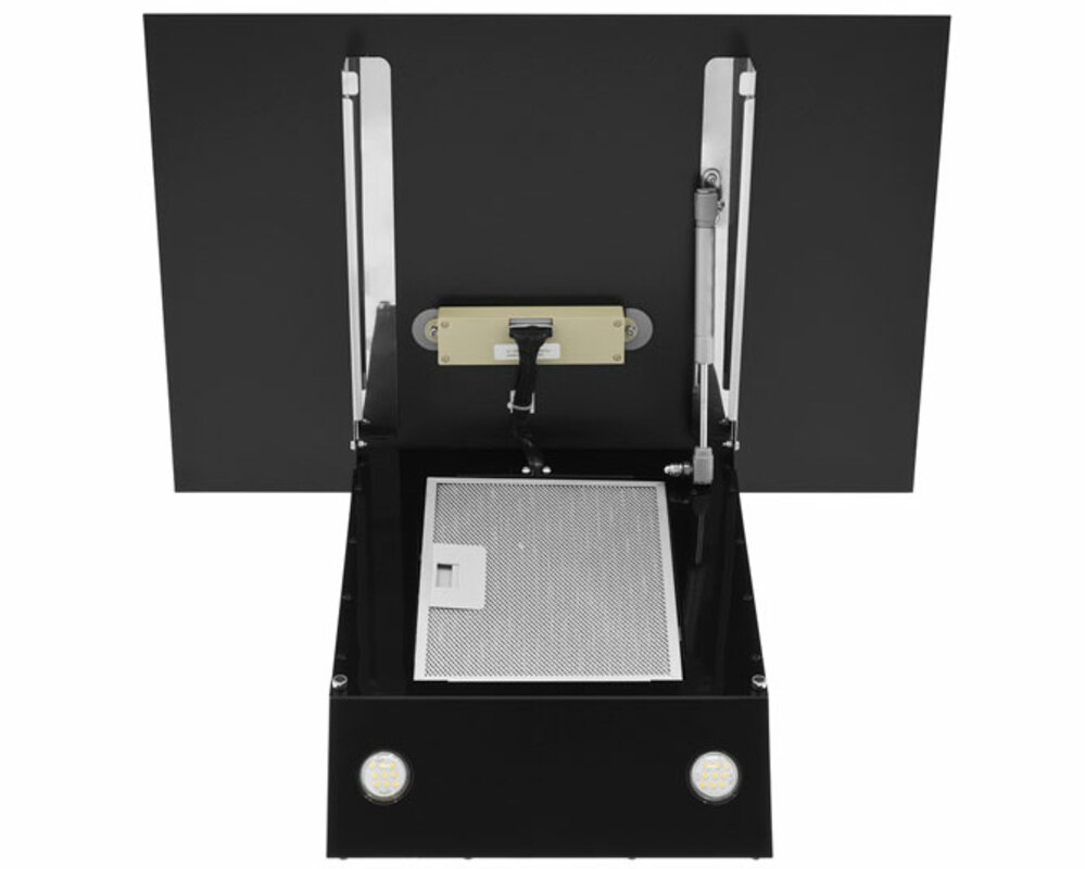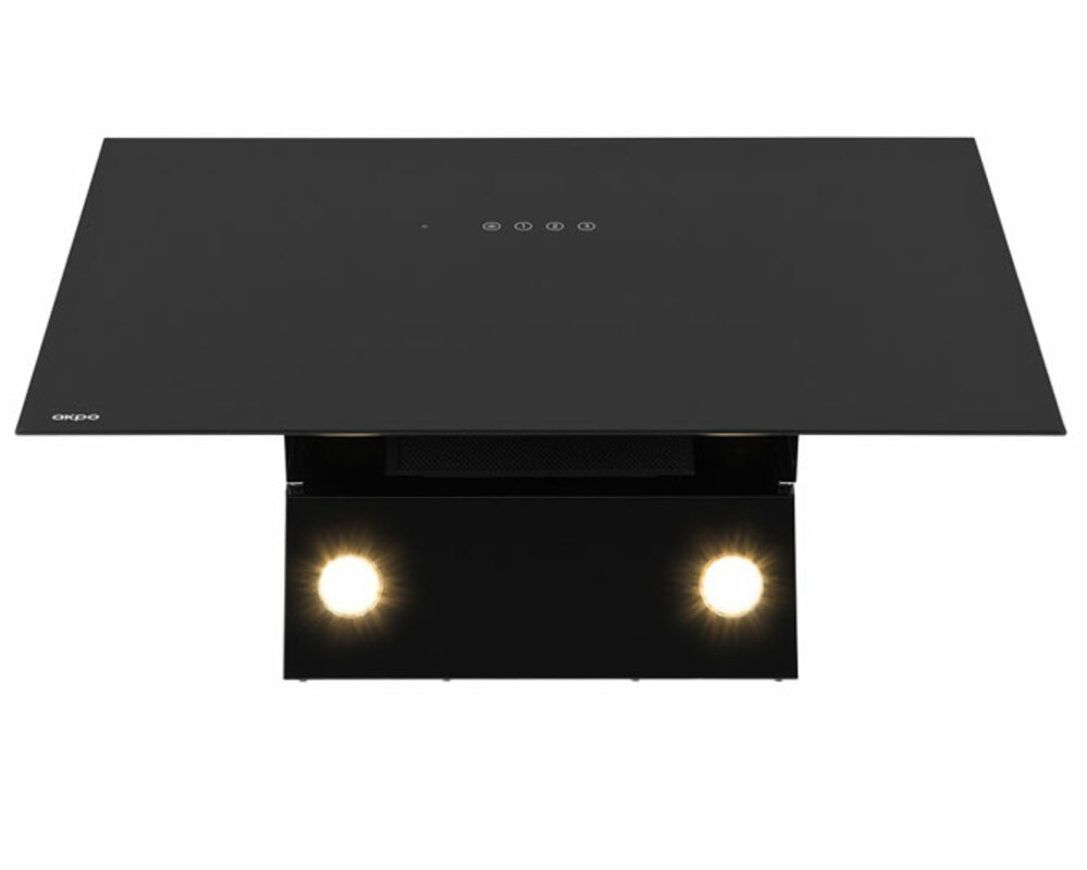 Современная наклонная кухонная вытяжка польского производства с инверторным двигателем, газлифтом стекла и дистанционным управлением, выпускаемая под польским брендом AKPO (АКПО).
