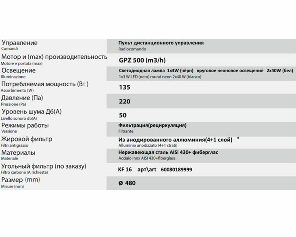 Вытяжка Sirius SILT 18 48 см ЧЁРНОЕ СТЕКЛО + LED подсв.