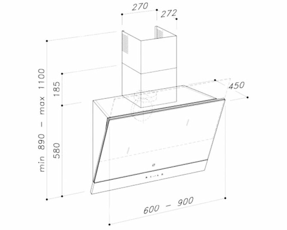Кухонная вытяжка Sirius SLTC 75 90 см НЕРЖ-ЧЁРНОЕ СТЕКЛО