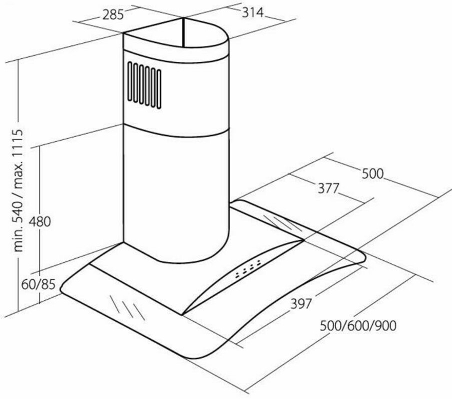 Описание Вытяжка каминная Akpo WK-4 Largo eco 60 черный