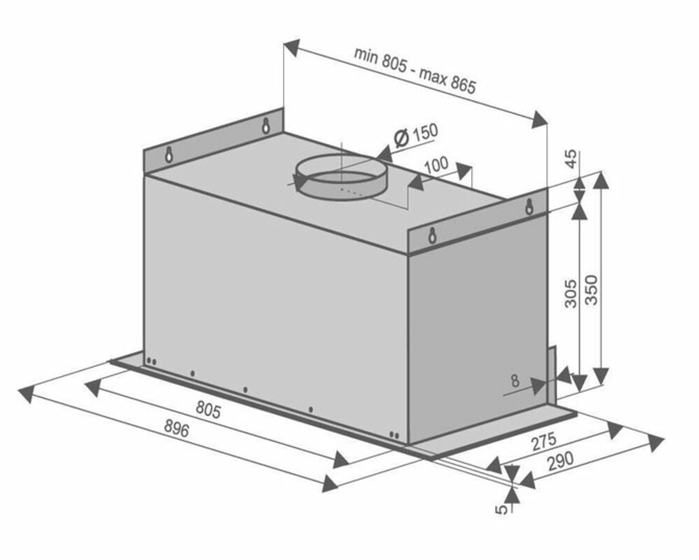 Диаметр выходного отверстия - 150 мм переходник 120 мм.