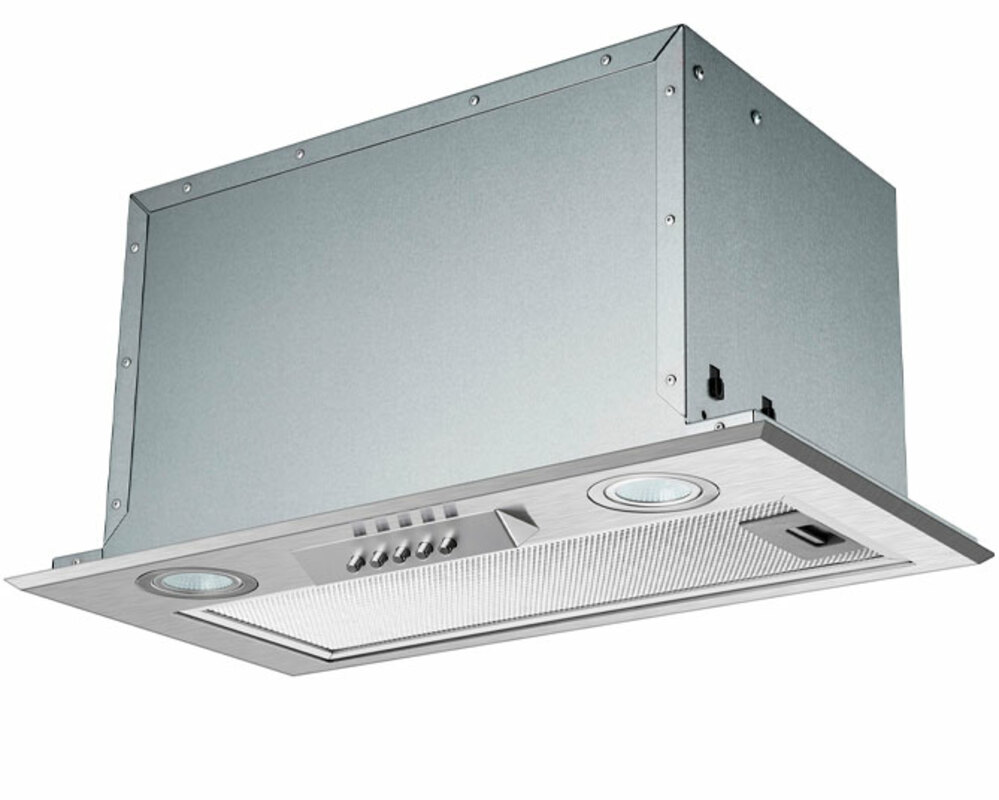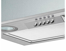 Корпус из нержавеющей стали отличается лаконичным дизайном и устойчивостью к загрязнениям, предусматривая простую интеграцию в кухонный гарнитур шириной 60 см (фактическая ширина вытяжки — 52 см, глубина — 28.4 см, высота — 29.9 см).