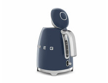 Электрический чайник SMEG в ретро-стиле 50-х годов, модель с дизайном Navy Blue. Чайник сочетает винтажный внешний вид с современными технологиями, подходящий для использования в интерьерах с классическим или тематическим оформлением.