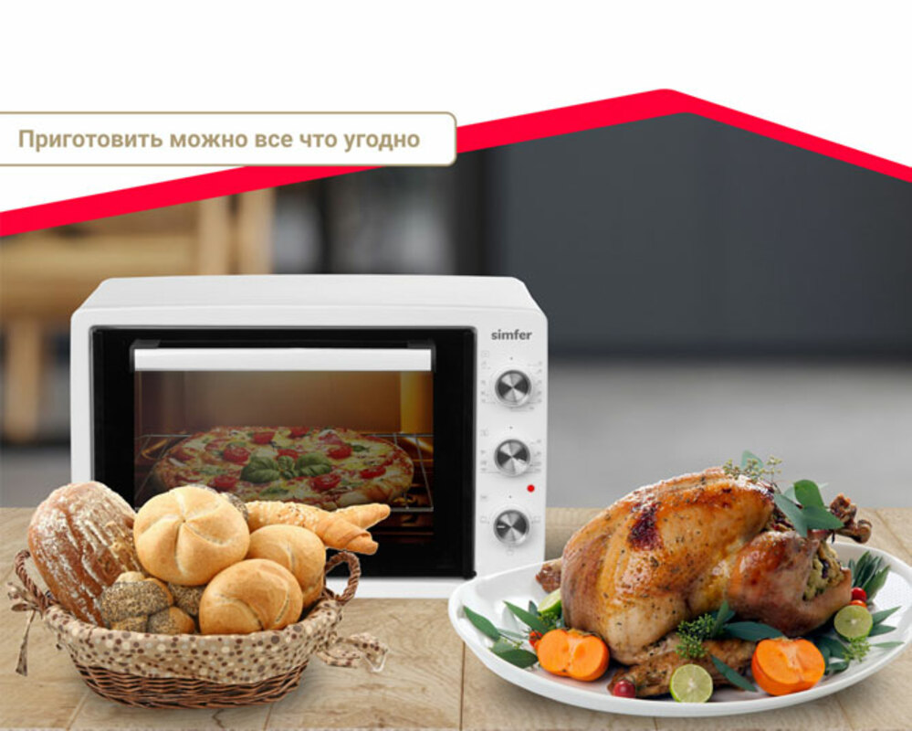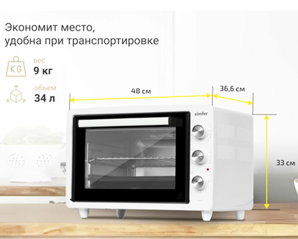 Дополнительным аргументом в пользу покупки мини-печи от Simfer становится комплектование каждого изделия противнем и решеткой.