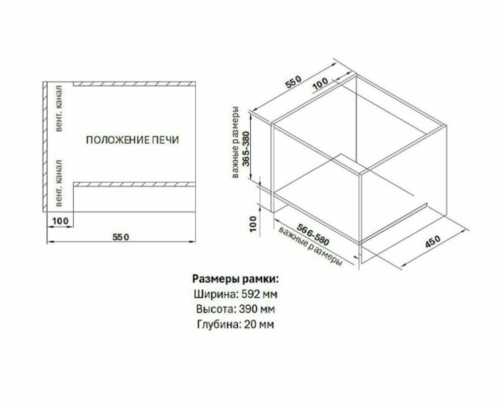 • Размеры для встраивания: 365-380×566-580×550 мм