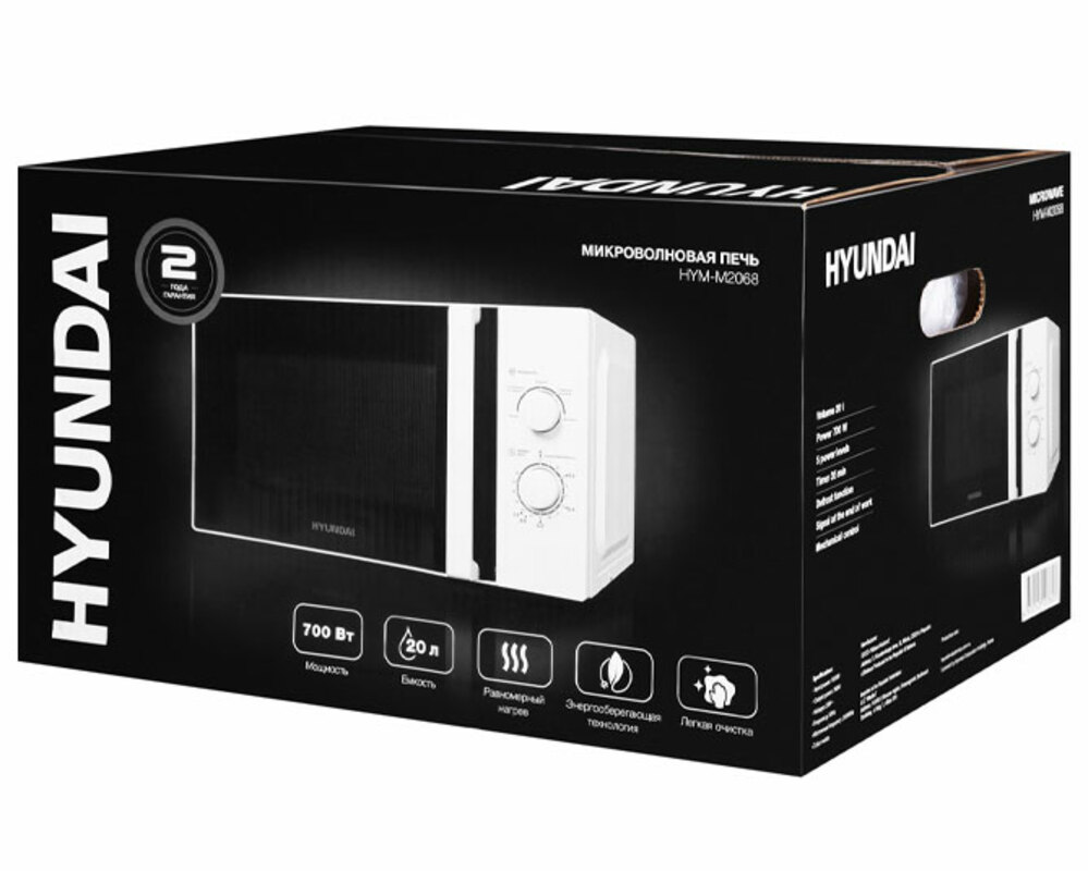 Для приготовления и разогрева блюд, разморозки продуктов может использоваться отдельно стоящая микроволновая печь Hyundai HYM-M2068 мощностью 700 Вт.