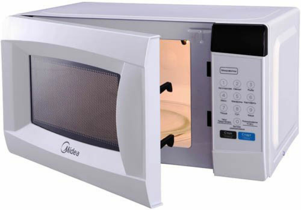 СВЧ печь MIDEA EM720CKE оснащена функцией блокировки включения при открытии двери.