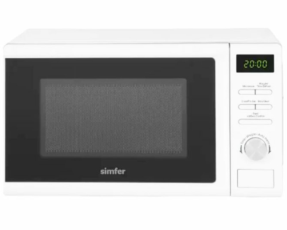 Микроволновая печь Simfer MD2250 в корпусе белого цвета обладает объемом 20 л.