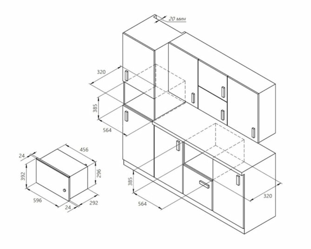 Размер для встраивания (ВхШхГ) (мм) 385 х 564 х 320