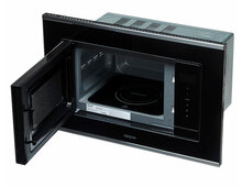 Особенности ПЛОСКОЕ ДНО БЕЗ ПОВОРОТНОГО СТОЛА / ИНВЕРТОРНЫЙ НАГРЕВ / Решетка для гриля / Быстрый старт / Таймер приготовления / Автоменю / Блокировка от детей / Подсветка камеры / Размораживание по весу / Большой LED дисплей / черный с декоративными элементами из нержавеющей стали