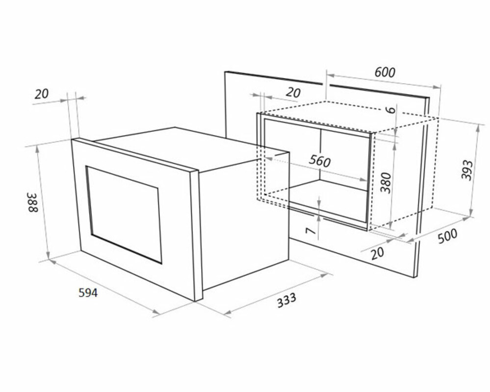 Размер для встраивания (В*Ш*Г) (мм) 382х568х340