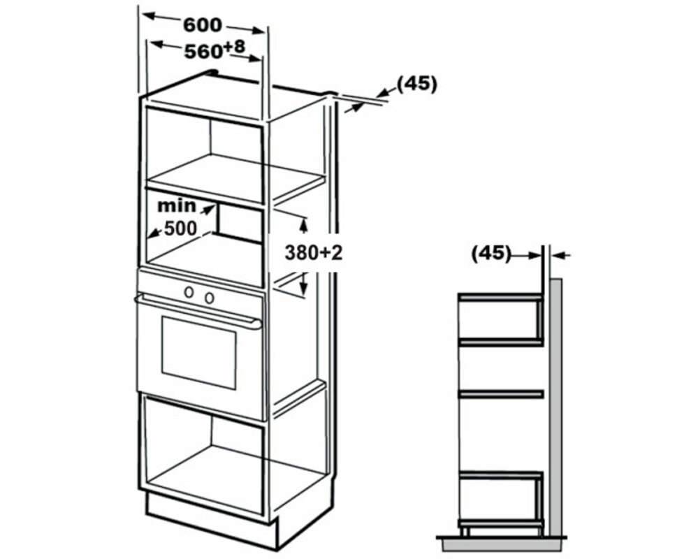 Габариты панели составляют: ширина – 59.5 см , высота – 38.8 см , глубина – 31.6 см , что делает ее совместимой с большинством стандартных ниш для встраивания Внутренняя камера выполнена из нержавеющей стали, устойчивой к механическим повреждениям и простой в уходе.
