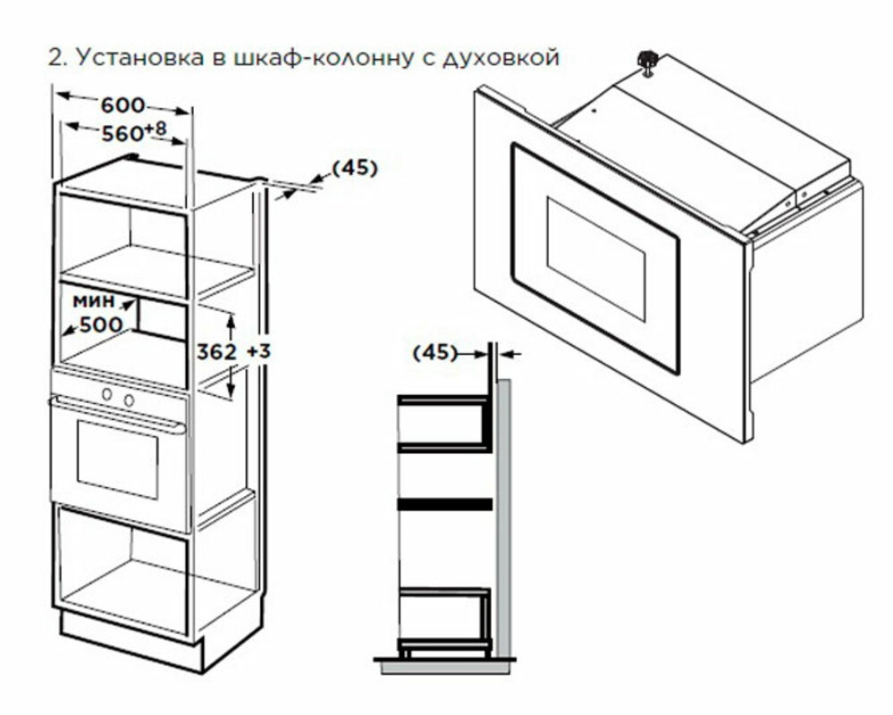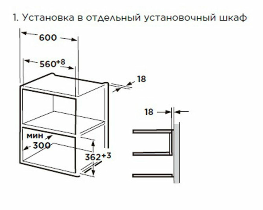 Габариты ниши для встраивания (В×Ш×Г) 362 × 560 × 500 мм