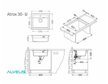 Мойка ALVEUS GRANITAL ATROX 30 CARBON - G91 590 X 500 1X в комплекте с сифоном 1132823