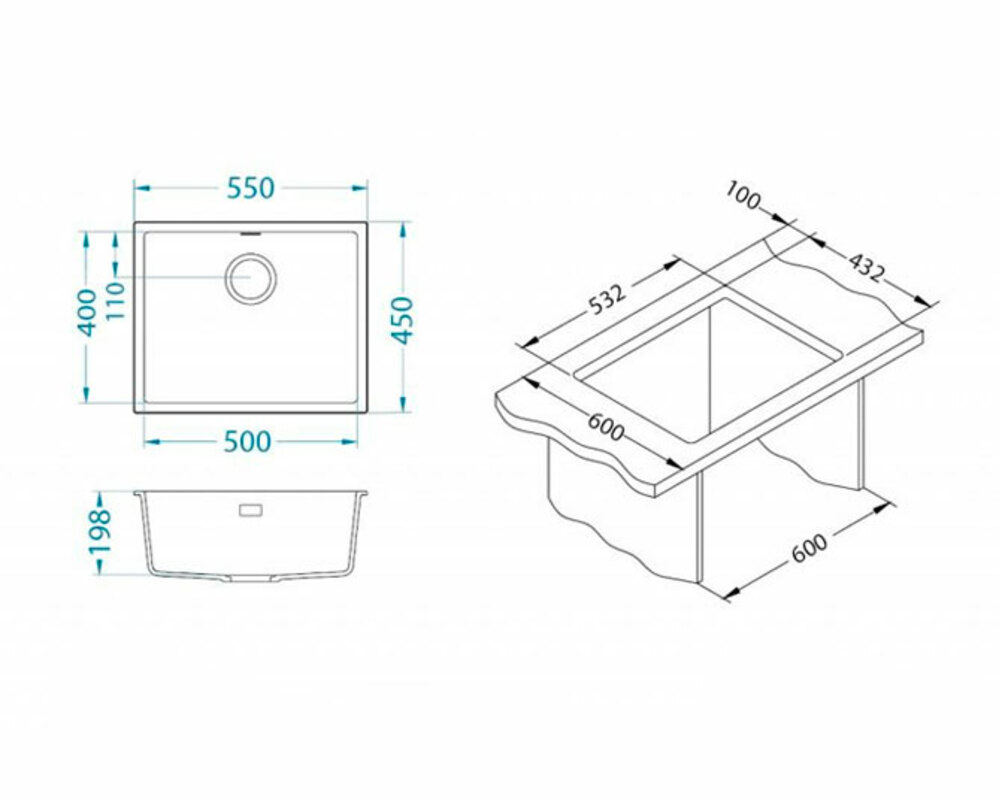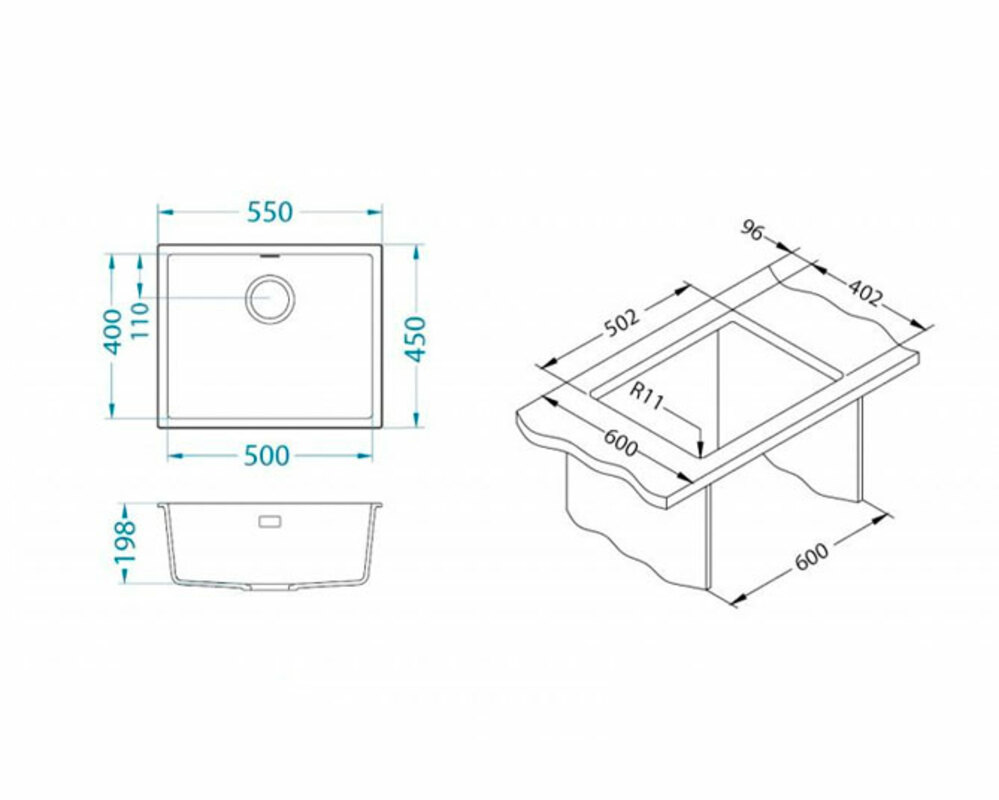 Размер мойки 450x450