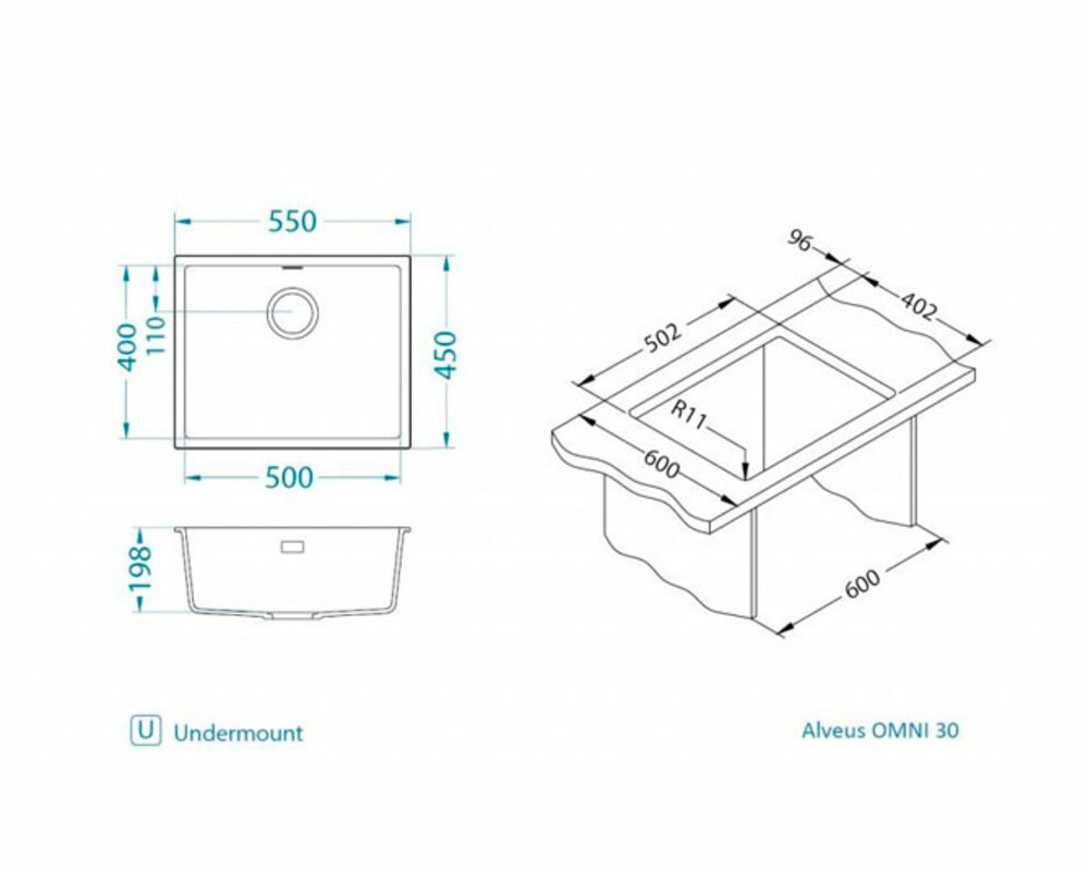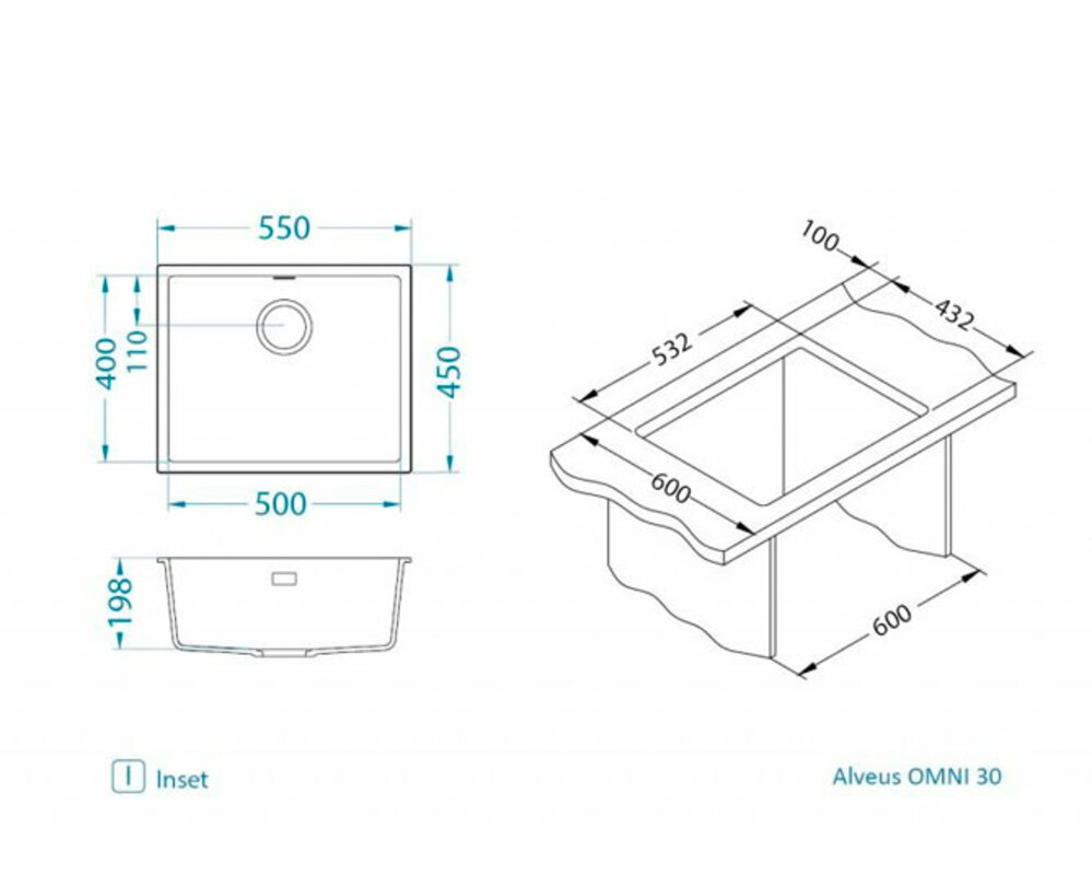 Мойка ALVEUS GRANITAL OMNI 30 CONCRETE-G81 550x450x198 с сифоном 1145083