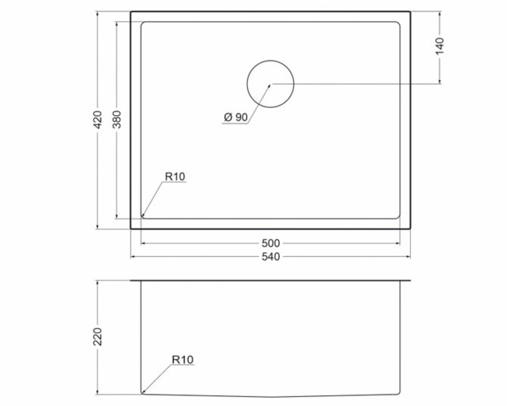 Размеры мойки, мм 540 x 420 мм