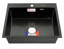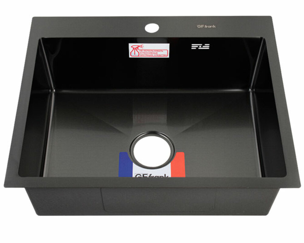 Мойка врезная, графитового цвета, большой сифон с переливом.