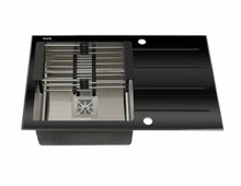 FRANK PROFI - Мойка для кухни врезная 78х50 см универсальная (левая +правая) , ЧЁРНОЕ СТЕКЛО + нержавеющая сталь, толщина стекла 8 мм, глубина 200 мм + большой КВАДРАТНЫЙ сифон - АВТОМАТ с переливом + корзина, артикул: 9503