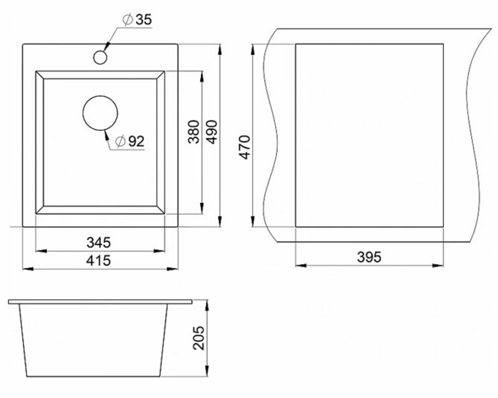 Размер чаши, мм 345x380