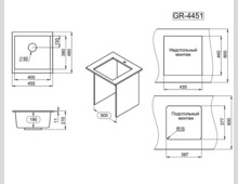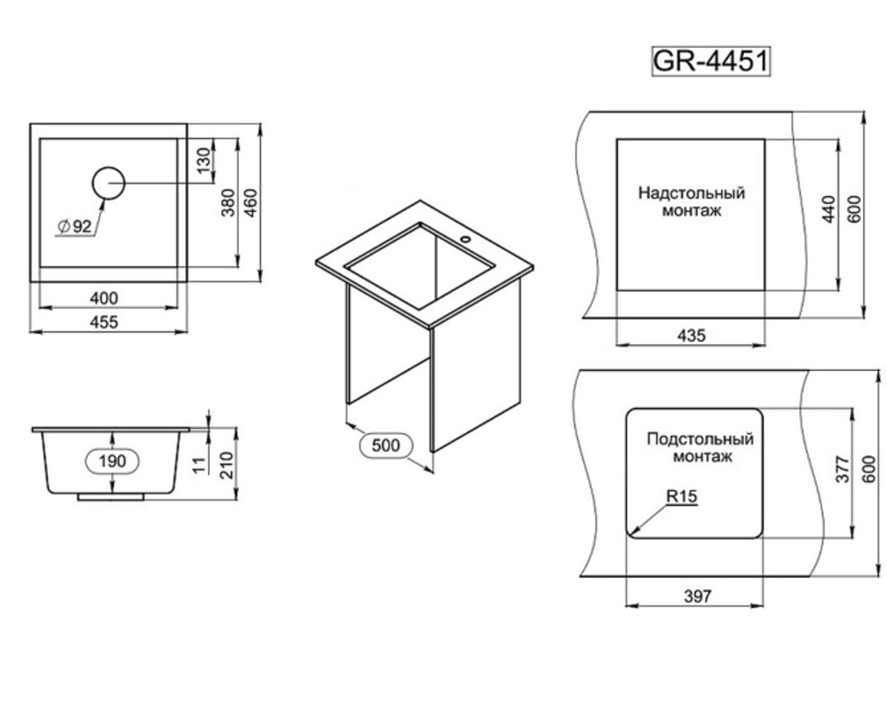 Возможность установки: 1. под столешницу; 2. вровень со столешницей; 3. сверху в столешницу.