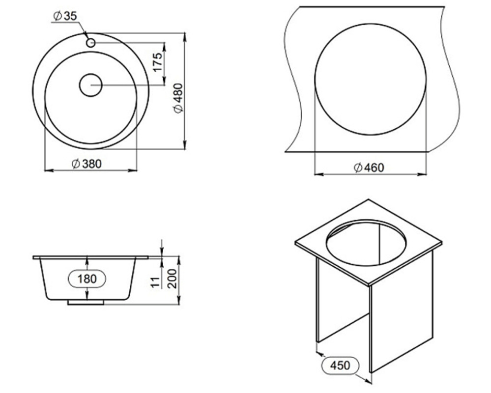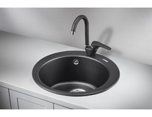 Круглая форма мойки обеспечивает легкость ухода, а устойчивость к царапинам и пятнам гарантирует долговечность эксплуатации.